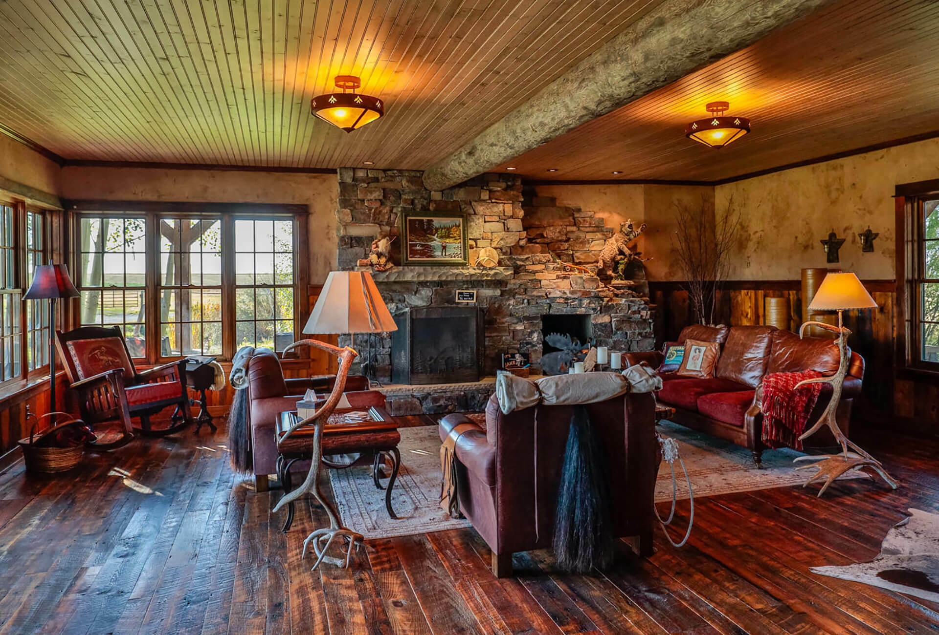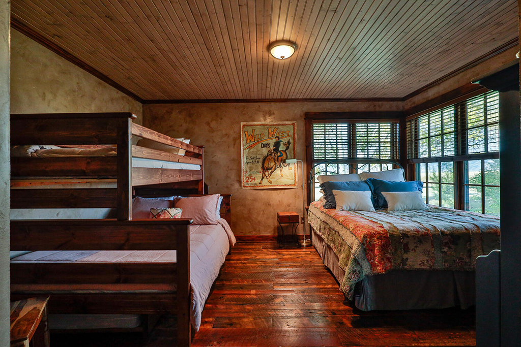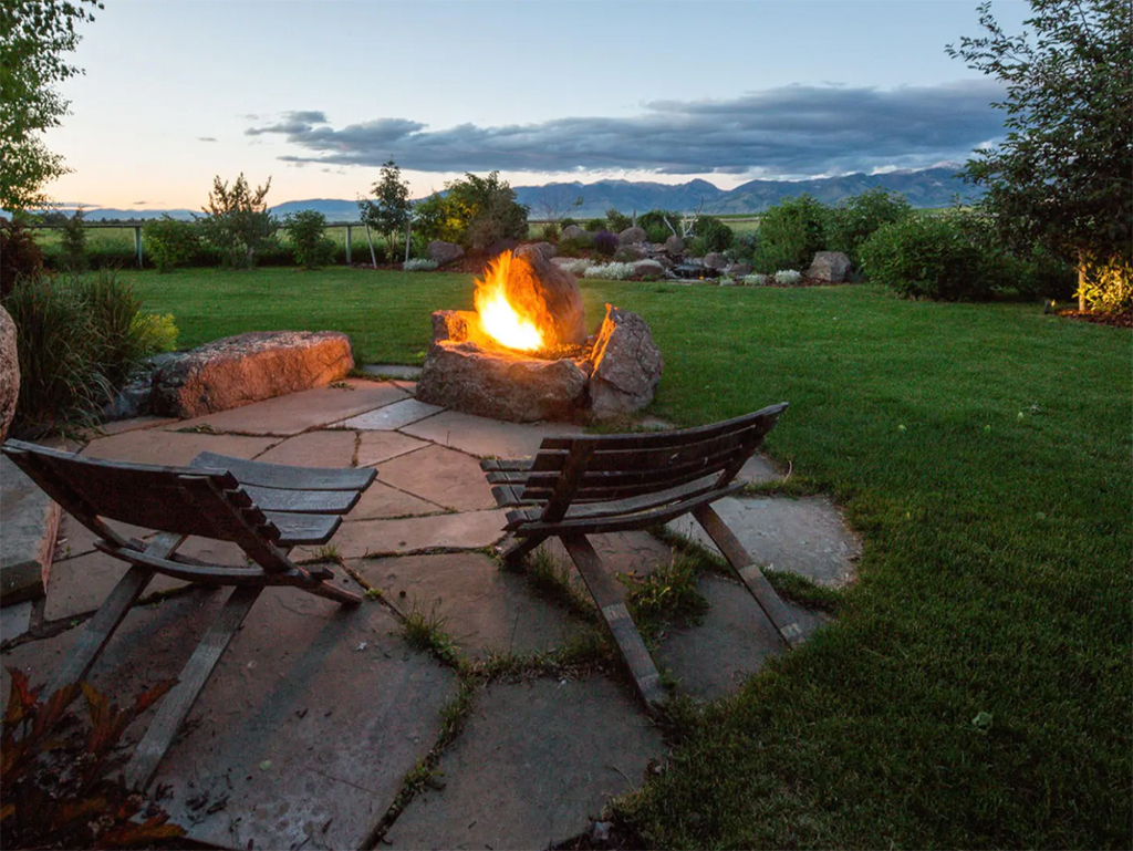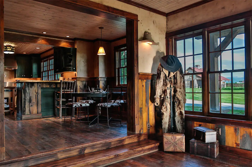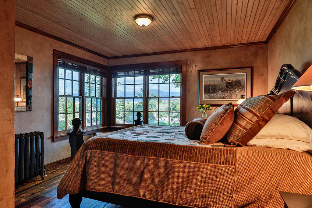 Additional rooms on the main level form a queen suite with twin bunk beds and pull-outs. While no two rooms are alike, each offers its own stunning view of the surrounding mountains, nearby Bozeman, and the Gallatin Valley.