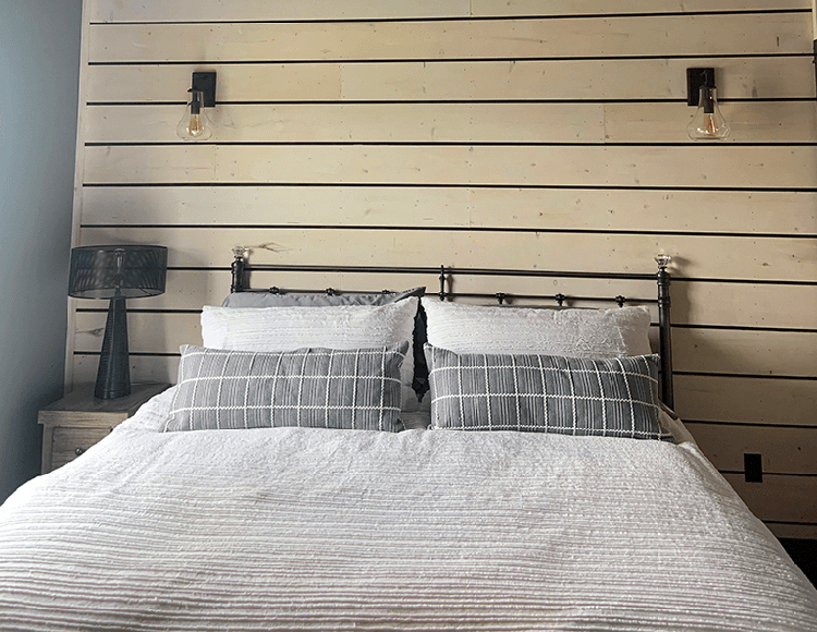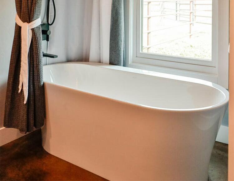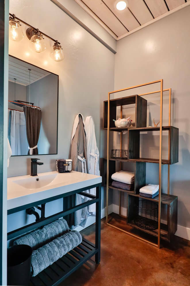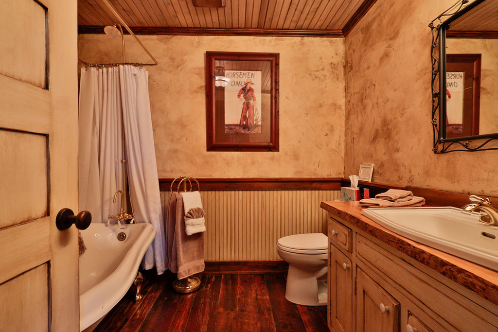 The great room is large with a seating area, dining table, and kitchen with island. It is adorned with decorations giving you a true taste of the Montana west. The bathrooms are large and beautifully decorated with quartz counters, integrated sinks, stained concrete, barn doors and benches for dressing. The master bathroom has a free-standing modern tub. Both bathrooms have rain shower heads in the showers. The stable bedrooms are a place to lay your head each night knowing it’s time well spent. High end linens, luxurious embroidered robes, heavy comforters, comfy beds, and soft pillows. Sleeping is easy.