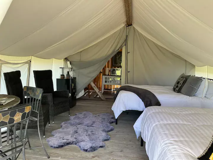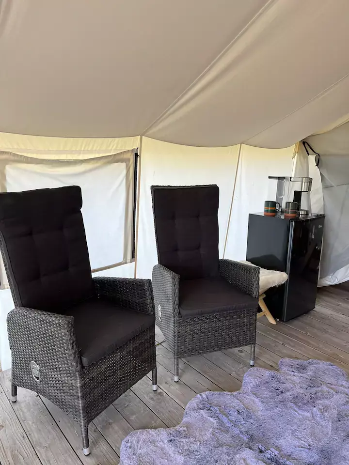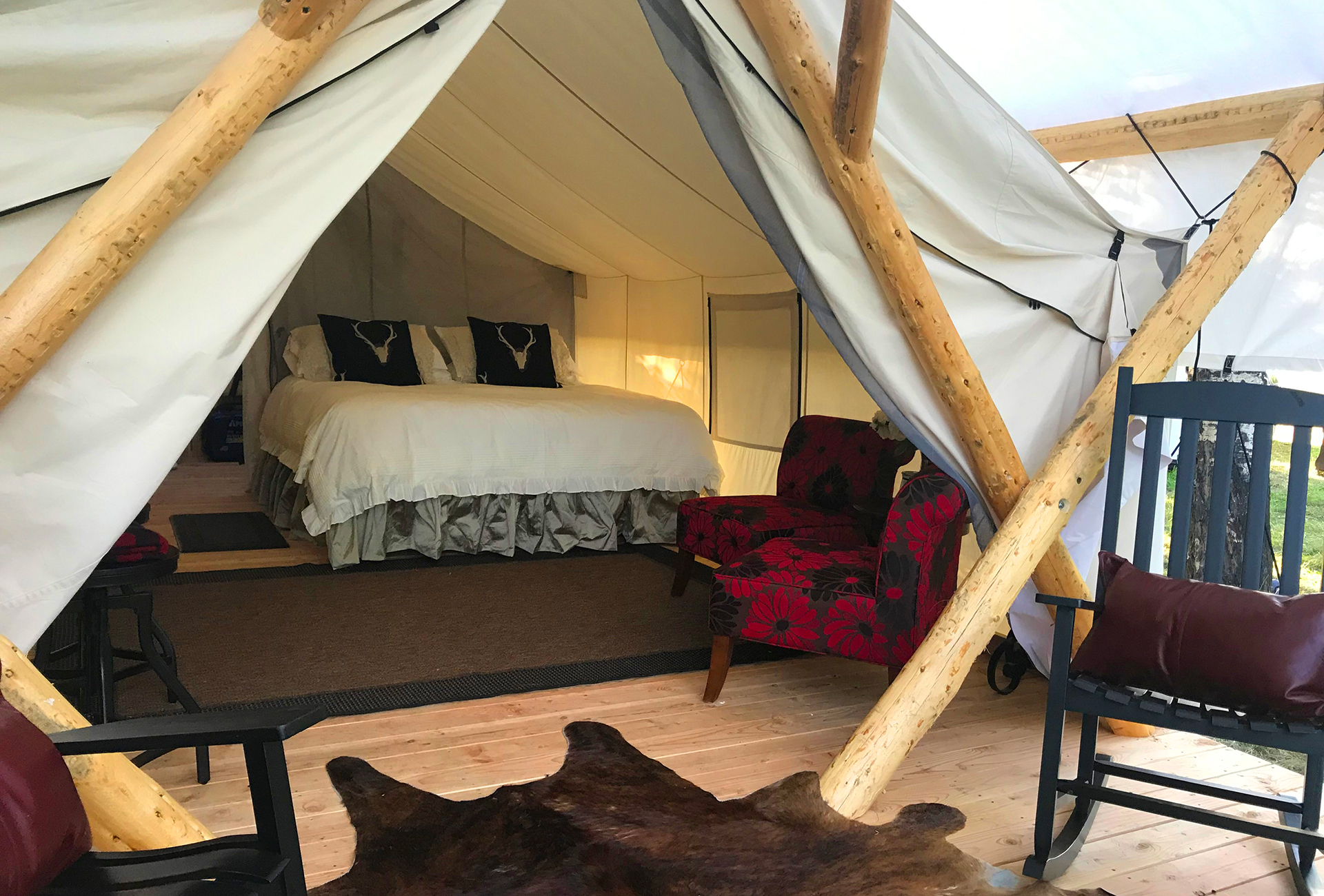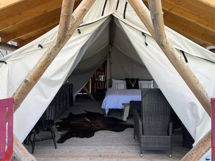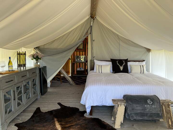 A luxurious collection of Glamping Tents available from mid–May to mid–October (weather dependent).