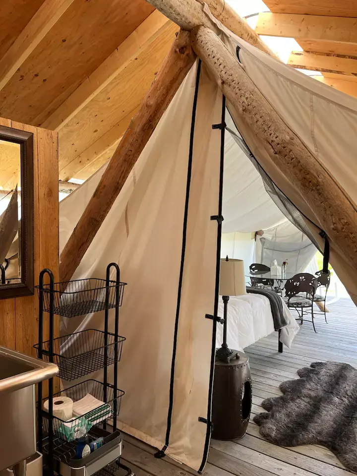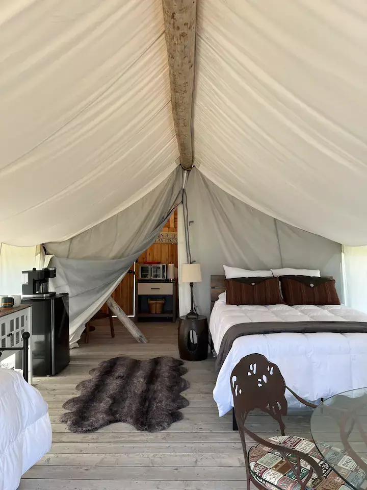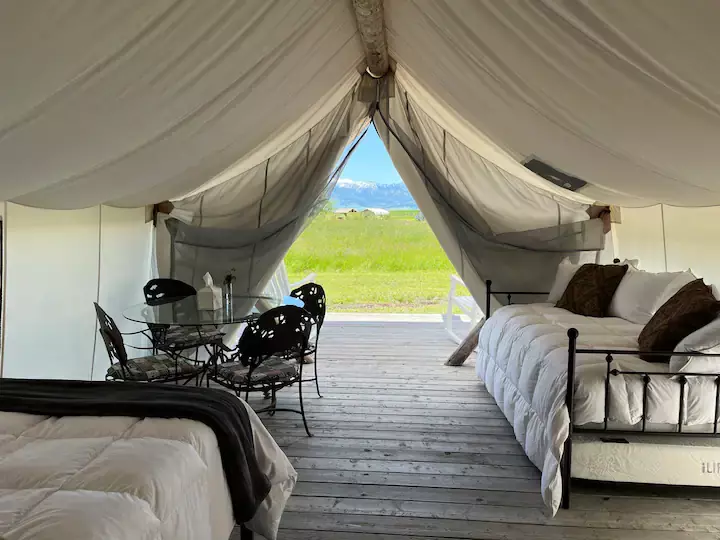 Comprised of 45 acres of secluded property within 10 minutes of Bozeman, MT and the local airport, Heritage Ranch offers views of the Bridger, Spanish Peaks and Tobacco Root Mountains, as well as endless opportunities for outdoor activities. Rustic elegance meets comfort here, which sets the tone for all of your experiences during your stay with us. Whether you come to stay in our lodge, the intimate cabin, or one of our 12 glamping tents, you’ll live every moment at the crossroads to adventure.