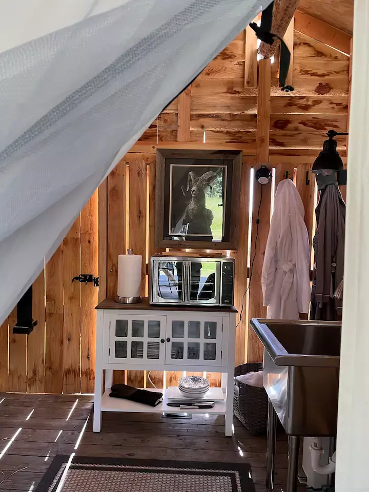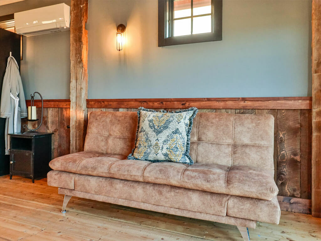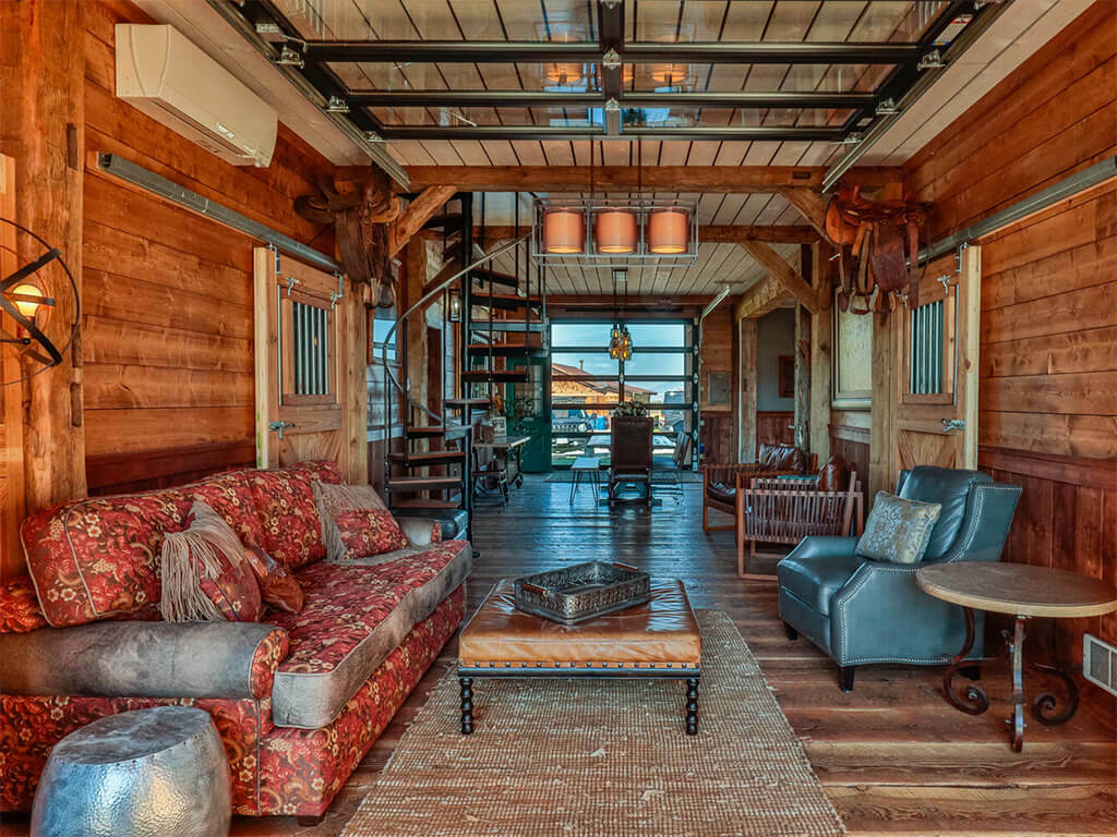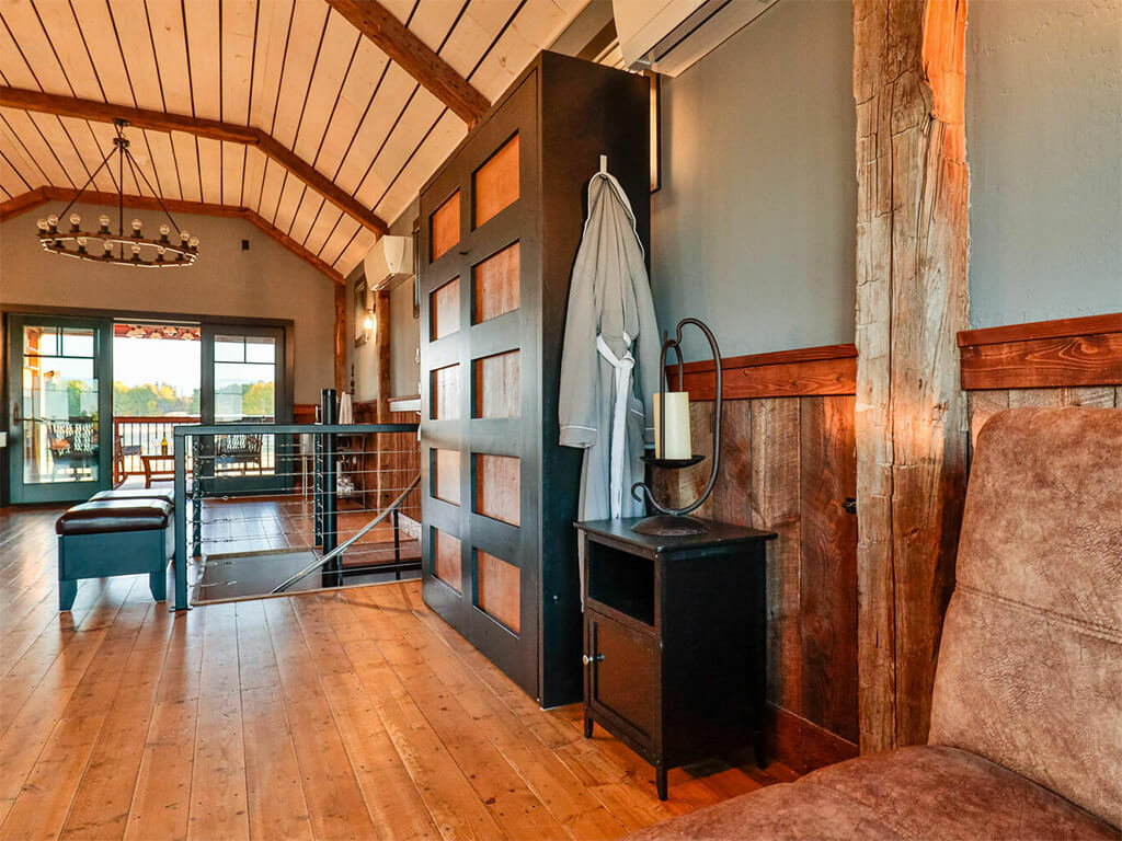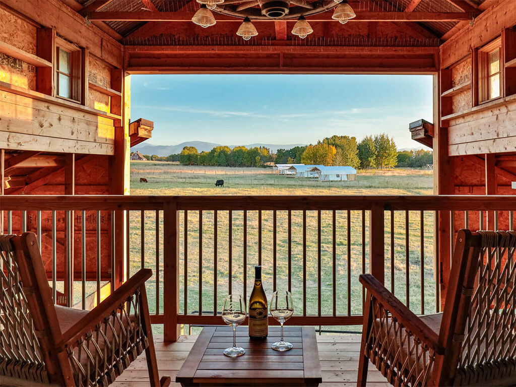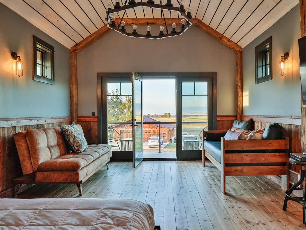Sitting between three mountain ranges and nestled into a quiet hollow with 360-degree views is Bozeman, Montana’s most unique rental property. This amazing luxury barn was recently renovated into the quintessential barndominium in July of 2021. This unique lux-barn is situated on 45 acres and shares the landscape along with our lodge, cabin, and glamping facilities. The 4 interior stalls have been turned into 2 guest suites with adjoining baths. The second-floor entertainment room comes with a custom-built queen-size murphy bed, sleeper sofa and custom-built daybed. The luxury barn sleeps up to 8. The character of the original barn has been kept intact yet is beyond well-appointed and comfortable.
