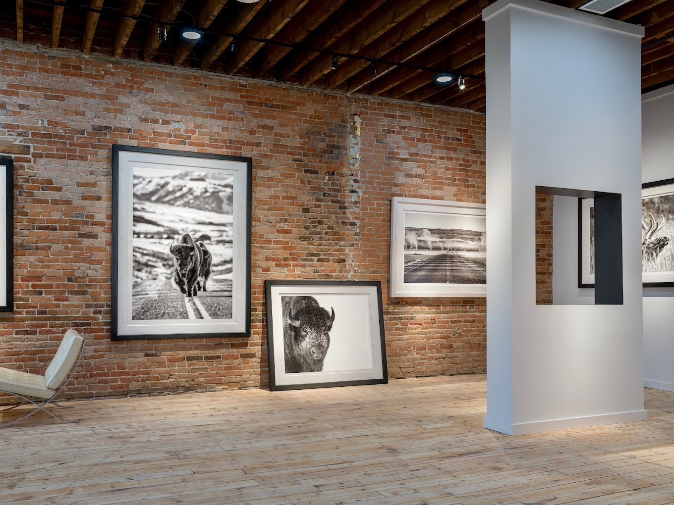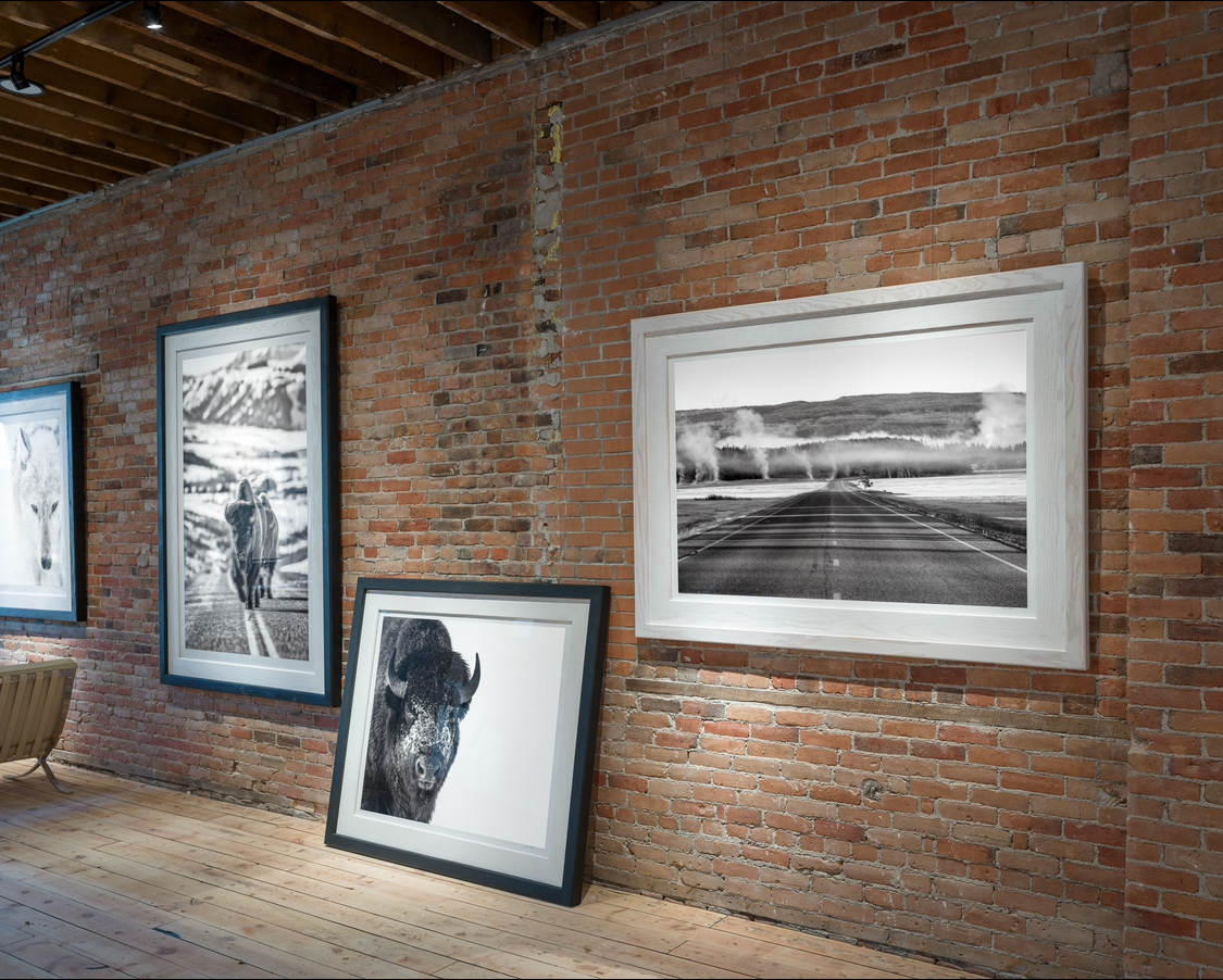 Kevin and Kimbie Noble purchased the Old Main Gallery building in July and spent the summer renovating the second floor creating a showroom for Kevin’s fine art photography along with a painting studio for Kimbie. The couple embraced the beauty and character of the 121 year old building by keeping the original floors and open loft ceiling. The 2,200 sq ft space feels like a cross between old Bozeman and a hipster New York City loft. Their goal was to create an art experience; one which engages your 5 senses. There is music playing, candles burning, expresso or champagne sipping, the rough touches of brick walls, and of course the big beautiful sights of art.